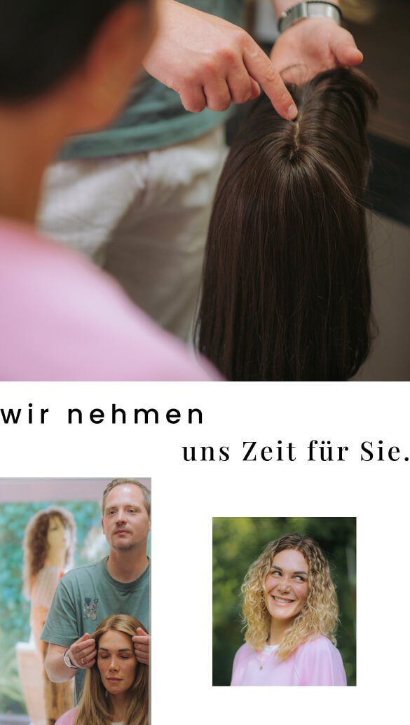 Der erste Schritt ist eine persönliche und einfühlsame Beratung. Gemeinsam besprechen wir, welche Form der Alopezie vorliegt (z. B. Alopecia areata, totalis oder universalis) und welche Lösung für Ihren Alltag am besten geeignet ist. Dabei spielen Tragekomfort, Natürlichkeit und Halt eine zentrale Rolle.